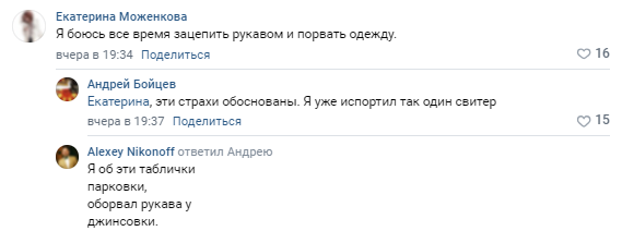 Также в социальных сетях жители города рассказывают, что столбы в зоне платной парковки занимают большую часть тротуара и мешают прохожим. Кроме того, по словам горожан, о знаки можно легко удариться, а некоторые уже успели порвать одежду об их острые края.